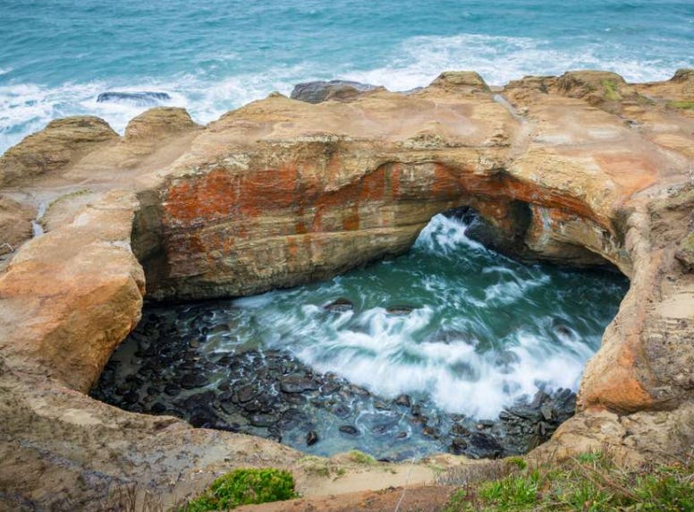 ONE OF MY FAVORITE PLACES on Earth is the Oregon Coast. There you’ll find great swirling caverns of crystal blue water that crash with terrifying force against these incredible cliffs. It echoes up and down the coast, smashing and shifting the literal edge of the continent. As you lie in bed, you can almost hear it still echoing inside your skull. When I think about our content-era of the 2020’s, that’s what I think of: a great, swirling, unintelligible whirlpool bashing into the edges of its container, chaos trying to break free.